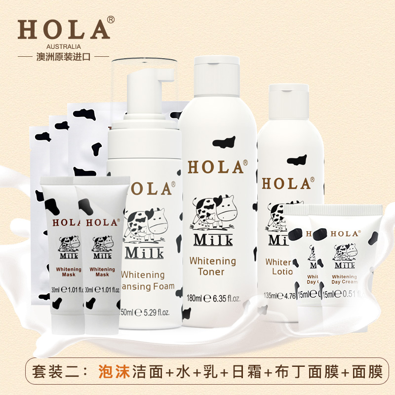 Hola/赫拉牛奶雪肤 补水保湿嫩肤 白皙提亮基础 面部护理套装