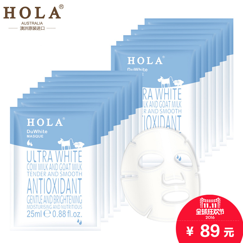Hola/赫拉双重美白面贴膜15片 牛羊奶修护滋养 美白保湿补水滋润