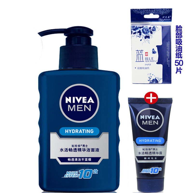 妮维雅男士洗面奶水活畅透精华洁面液l精华露小蓝管罐补水保湿