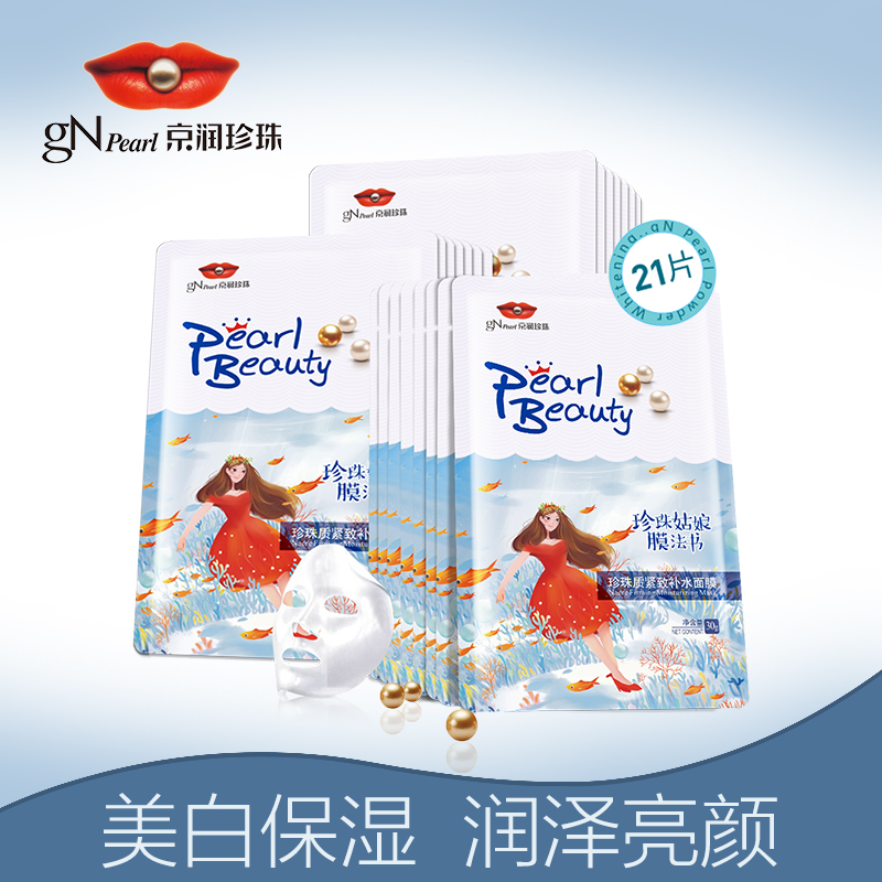京润珍珠珍珠粉美白补水面膜21片 控油保湿滋养面膜贴女提亮肤色