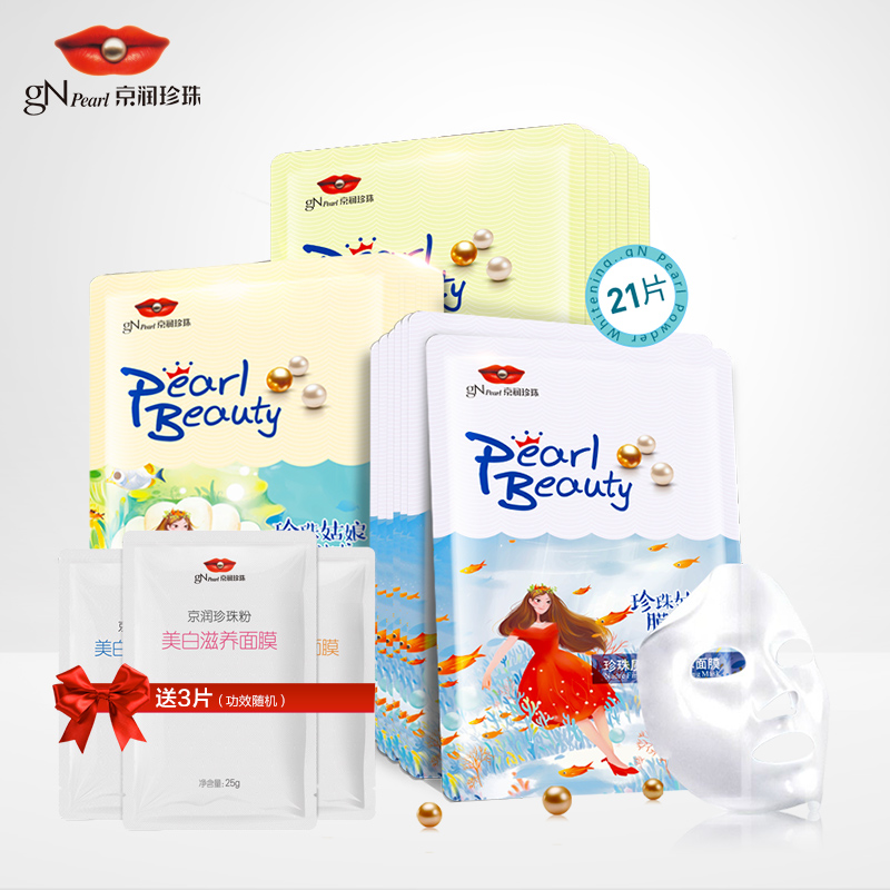 京润珍珠珍珠粉美白滋养面膜21片组合 保湿补水面膜贴 提亮肤色