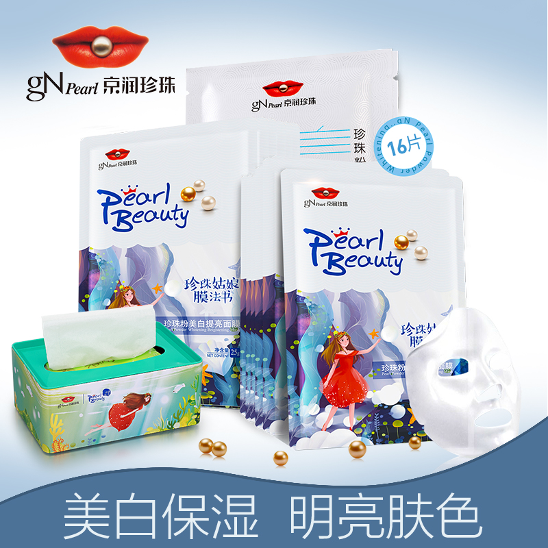 的热门产品京润珍珠美白提亮面膜16片组合 美白补水保湿滋养修护面膜贴女