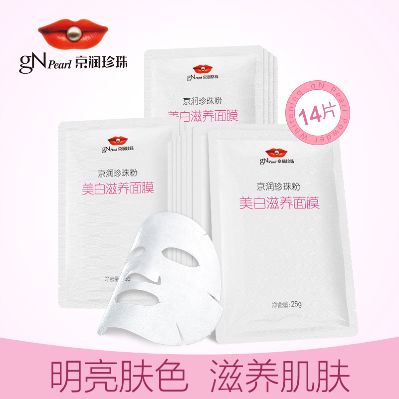 京润珍珠珍珠粉美白滋养面膜14片组合 保湿补水面膜贴 提亮肤色