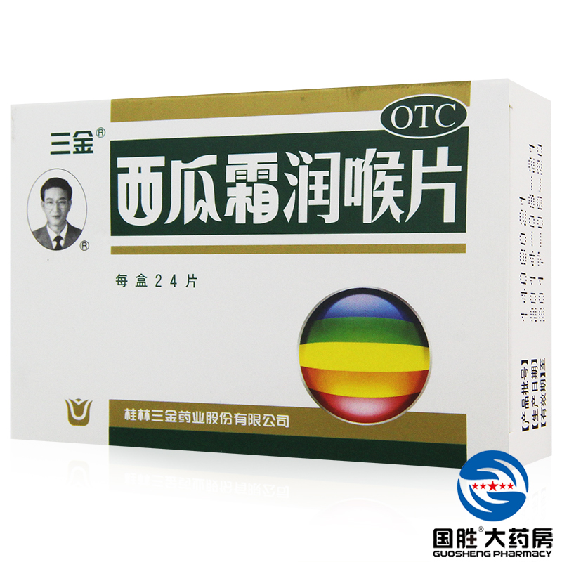 产品剂型:片剂 适用人群:不限 药品分类:非处方药 有效期:36个月 品牌:三金 类别:中药 用法:含服 疾病:咽喉炎.扁桃体炎 药品名称:西瓜霜润喉片 药品通用名:西瓜霜润喉片 批准文号:国药准字Z45021646 生产企业:桂林三金药业股份有限公司 使用剂量:每小时含化2-4片 症状:声音嘶哑.咽喉肿痛 规格:0.6g*24片/盒 套餐类型:套餐一.标准装 查看全文