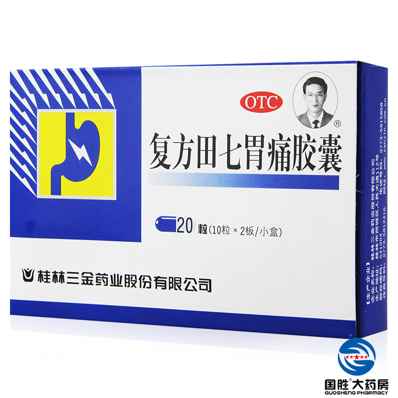 产品剂型:胶囊 适用人群:不限 药品分类:非处方药 用法:口服 有效期:36个月 品牌:三金 类别:复方制剂 疾病:胃炎.胃酸过多 生产企业:三金集团桂林三金生物药业有限责任公司 规格:0.5G*20粒/盒 症状:胃不适.胃胀.胃痛 使用剂量:一次3-4粒,一日3次 药品名称:复方田七胃痛胶囊 药品通用名:复方田七胃痛胶囊 批准文号:国药准字Z45020611 查看全文