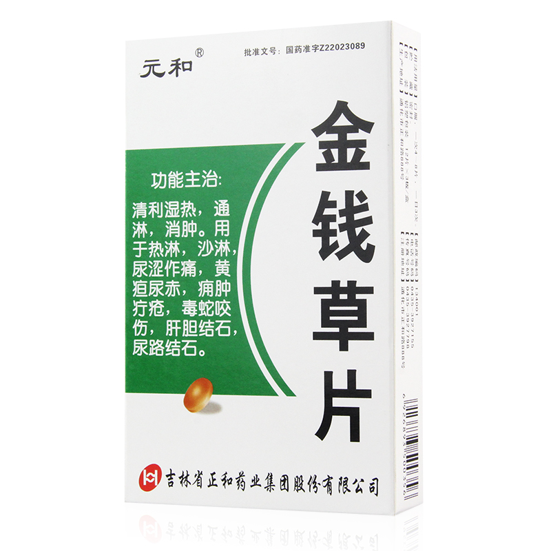 产品剂型:片剂 适用人群:不限 用法:口服 药品类别:中药 有效期:36个月 药品分类:处方药 疾病:泌尿系统感染 症状:排尿痛 品牌:元和 生产企业:吉林省正和药业集团股份有限公司 药品规格:0.3g*12片*3板/盒 批准文号:国药准字Z22023089 药品名称:金钱草片 药品通用名:金钱草片 使用剂量:一次4-8片,一日3次 查看全文