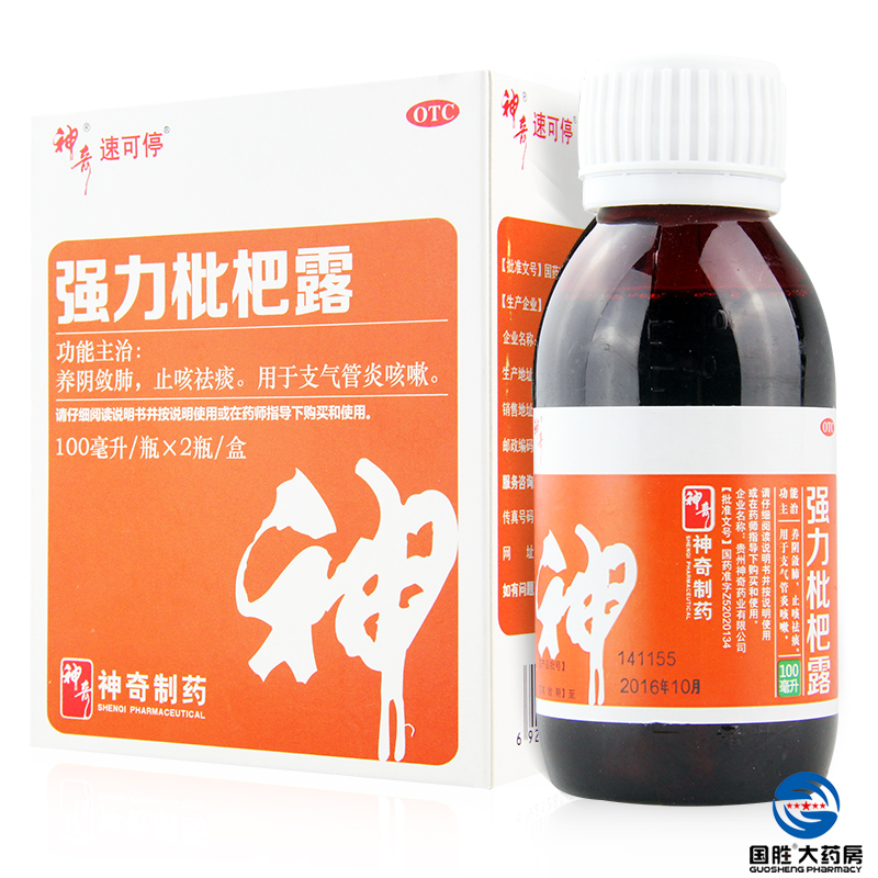 适用人群:不限 有效期:24个月 药品分类:非处方药 用法:口服 产品剂型:口服液 类别:中药 症状:咳嗽 药品名称:强力枇杷露 药品通用名:强力枇杷露 套餐类型:套餐一.标准装 疾病:支气管炎.气管炎 品牌:神奇 生产企业:贵州神奇药业有限公司 规格:100ml*2瓶/盒 使用剂量:口服,一次15毫升,一日3次。 批准文号:国药准字Z52020134 查看全文
