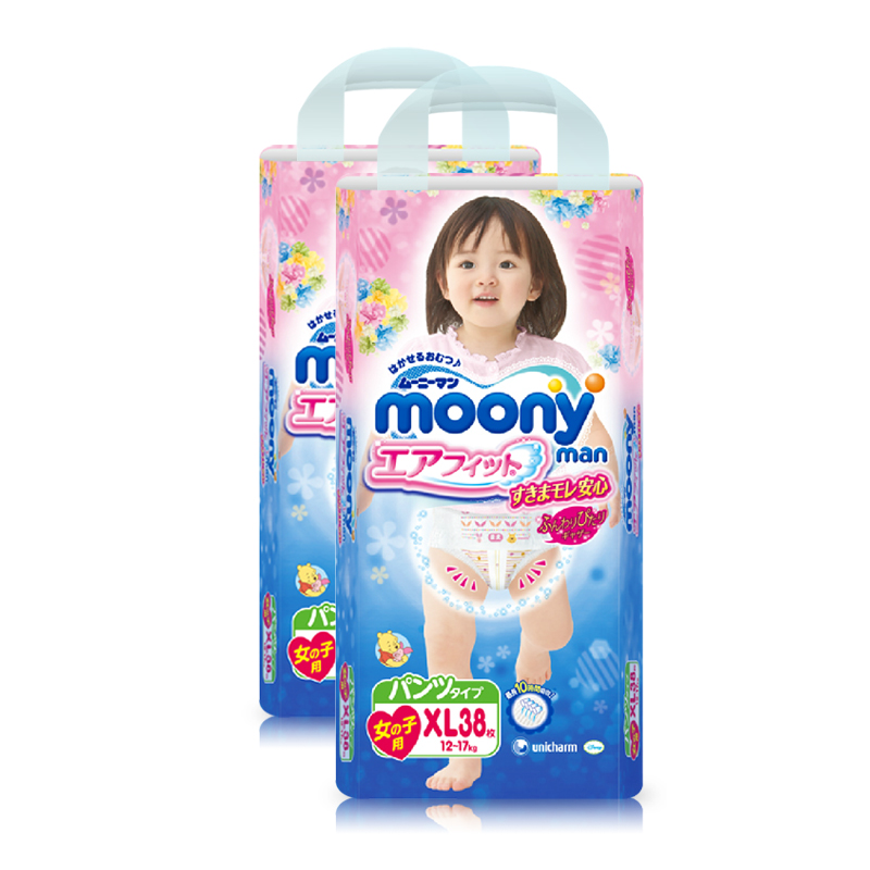 Moony尤妮佳XL38片女2两包装 日本原装进口婴儿裤型纸尿裤 拉拉裤