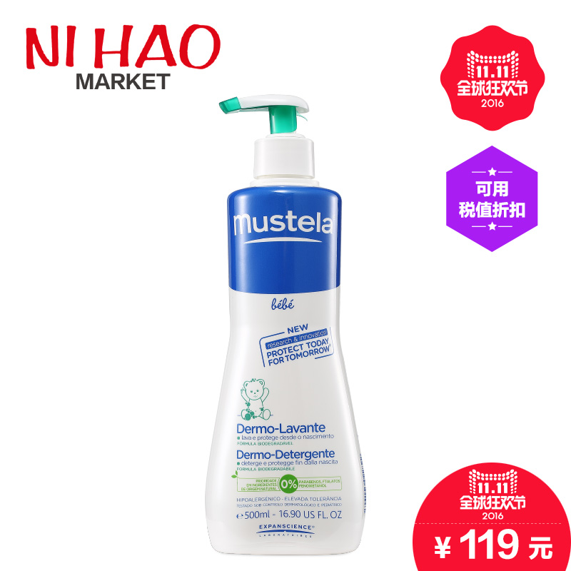 品牌:MUSTELA/妙思乐 系列(型号):婴儿二合一洗发沐浴露 容量:500ml 适用年龄:新生 净含量:500ml 产地:意大利 查看全文