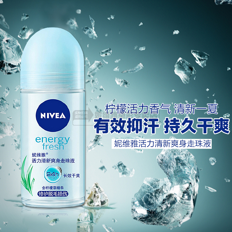 Nivea/妮维雅走珠止汗露 活力清新爽身走珠液50ml 干爽香体液正品