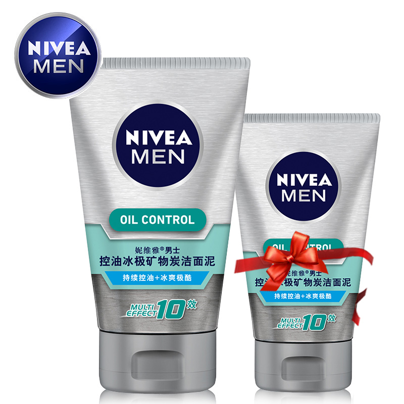 妮维雅男士洗面奶 控油冰极矿物炭洁面泥100g+50g控油抗痘去黑头