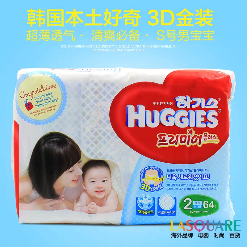 韩国本土huggies好奇3Dplus纸尿裤S码2段64片男宝专用尿不湿