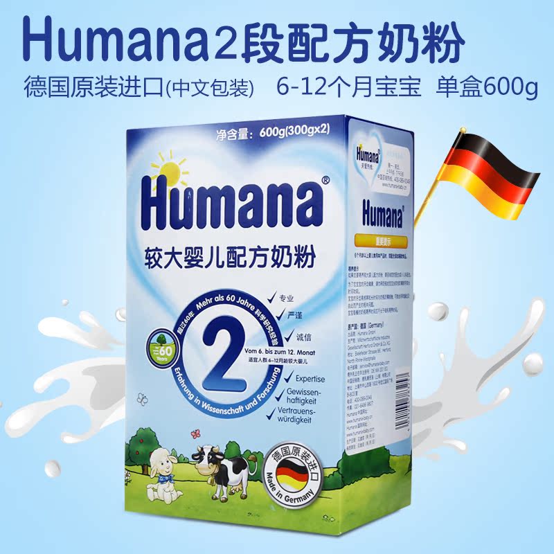 德国瑚玛娜Humana婴幼儿配方奶粉中文版2段(适合6-12个月)600g