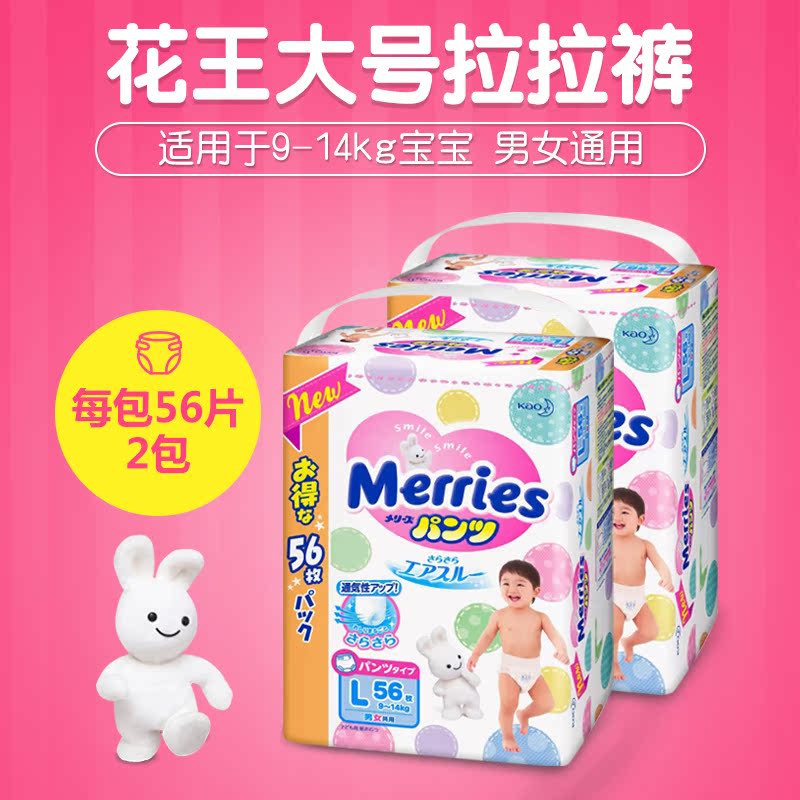 日本进口花王妙而舒 拉拉裤L56宝宝成长训练裤日本原装进口2包装