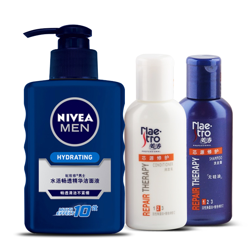 妮维雅男士洗面奶套装水活畅透精华露洁面液小蓝管补水保湿
