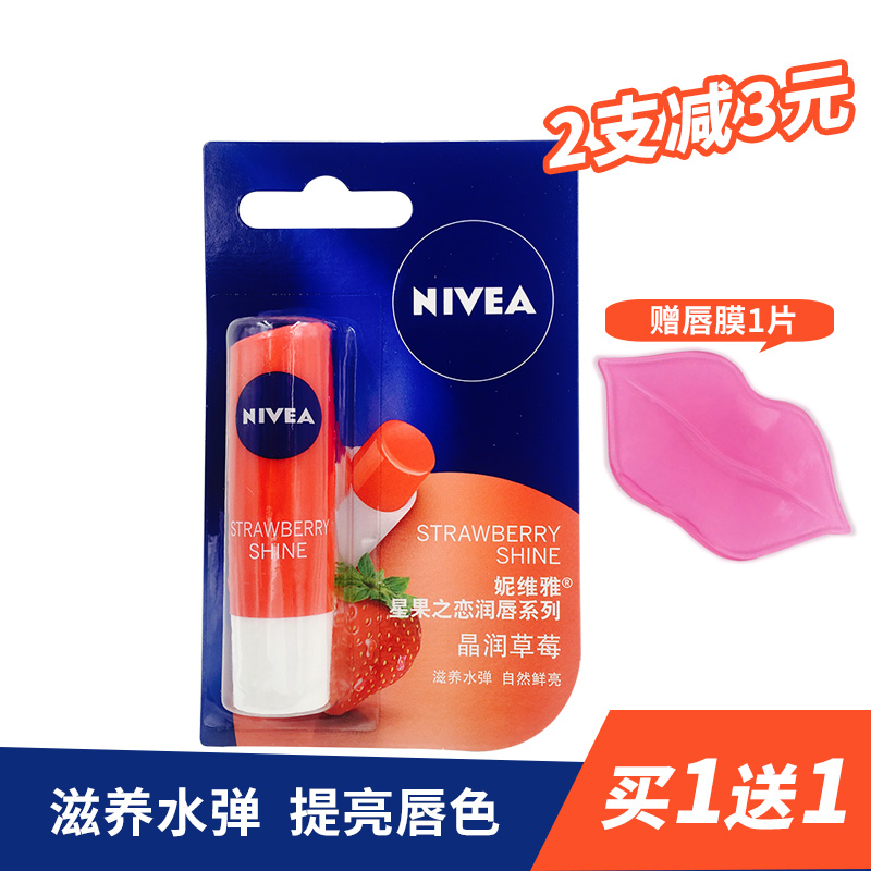 妮维雅润唇膏男女无色草莓型补水保湿滋润防干裂唇彩口红淡化唇纹