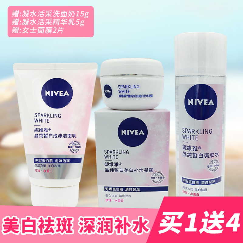 妮维雅美白袪斑套装洗面奶爽肤水面霜补水保湿淡斑滋润