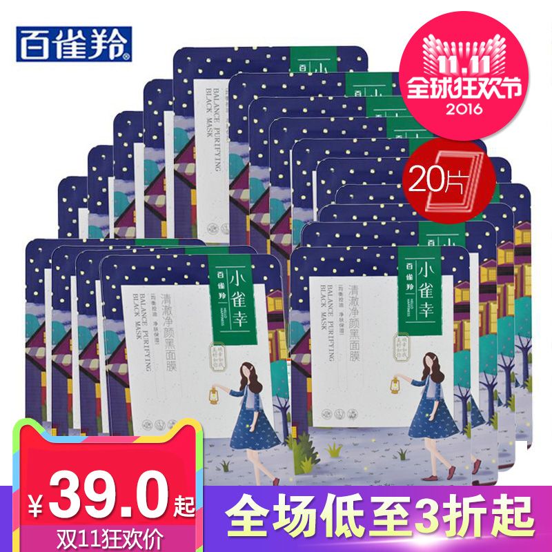 百雀羚面膜小雀幸清澈净颜黑面膜补水保湿滋润睡眠蚕丝面膜贴免洗