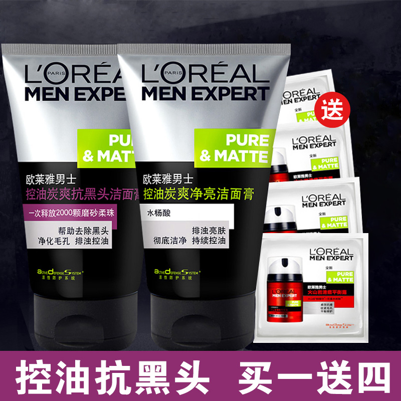 欧莱雅男士洗面奶护肤套装控油抗碳爽黑头净亮洁面膏乳火山岩清痘