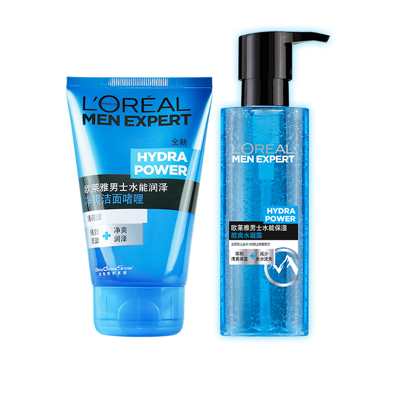 欧莱雅男套装水能保湿酷爽水凝露 净爽洁面啫喱醒肤露面霜洗面奶