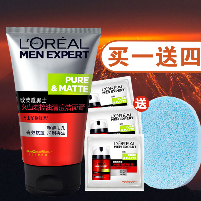 欧莱雅男士洗面奶火山岩控油祛痘洁面膏去黑头深层清洁收缩毛孔