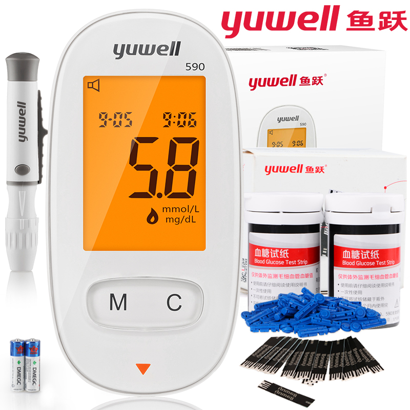 鱼跃血糖测试仪家用 智能语音免调码血糖仪试纸测量仪器背光590型