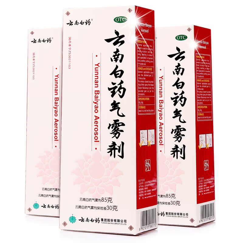 品牌:云南白药 适用人群:不限 用法:皮肤外用 药品分类:非处方药 有效期:36个月 产品剂型:外用液体剂 类别:中药 生产企业:云南白药集团股份有限公司 药品名称:云南白药气雾剂 药品通用名:云南白药气雾剂 使用剂量:喷于伤患处一日3~5次 批准文号:国药准字Z53021103 疾病:外伤.韧带损伤.风湿骨痛 症状:关节红肿.扭拉伤.瘀肿.瘀血肿痛 规格:85g+30g/盒 查看全文