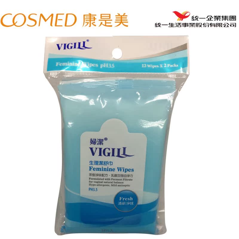 统一康是美VIGLL妇洁生理洁舒巾 婦科女性私處抑菌護理清洁柔湿巾