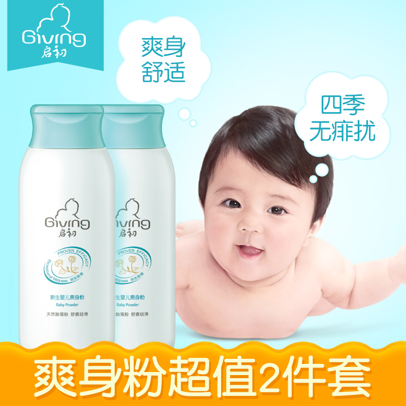 产地:中国大陆 品牌:Giving/启初 百货品类:爽身粉/粉扑 系列(型号):爽身粉100g*2系列 容量:100g*2 查看全文
