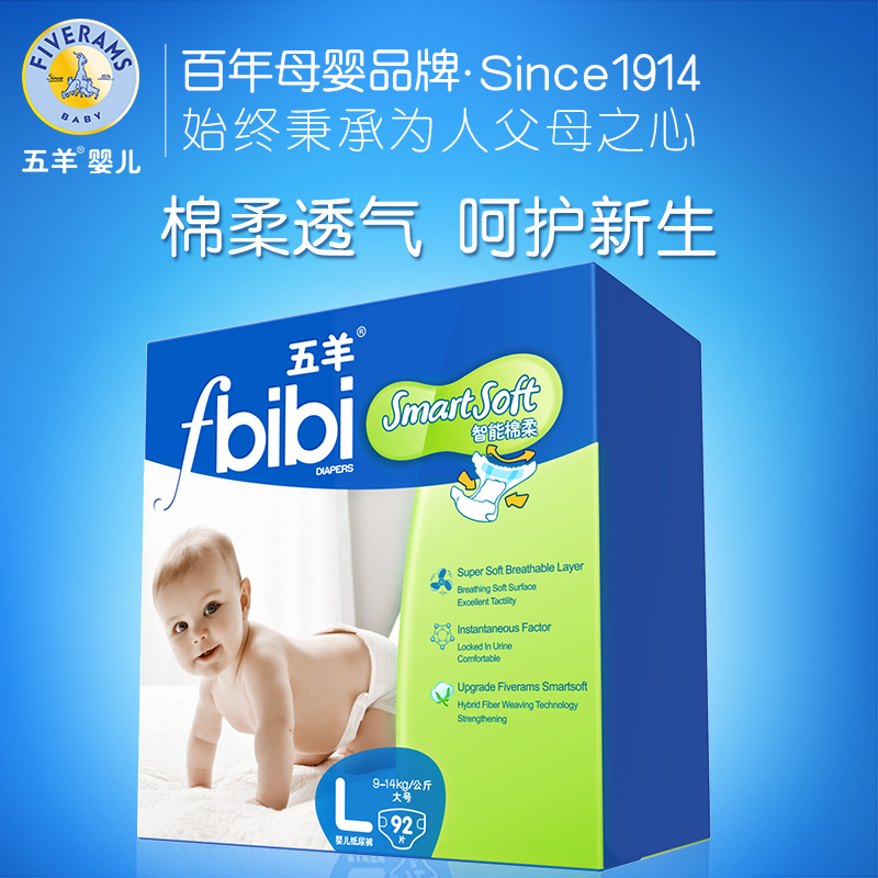 五羊宝宝纸尿裤L码92片 干爽透气棉柔 婴儿成长裤纸尿片尿不湿