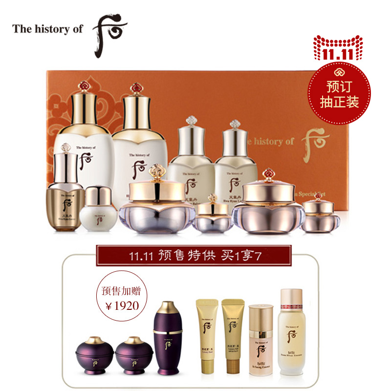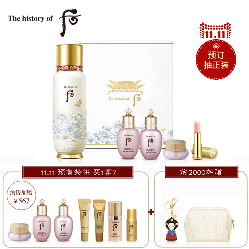 限期使用日期范围:2018-01-01至2018-11-24 功效:提亮肤色 规格类型:正常规格 品牌:The history of whoo/后 面部护理套装单品:【官方预售】后拱辰享雪玉凝系列礼盒7件套301ml 适合肤质:任何肤质 产地:韩国 保质期:3年 查看全文