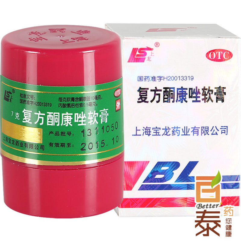 适用人群:不限 有效期:24个月 用法:皮肤外用 药品分类:非处方药 产品剂型:软膏剂 药品类别:复方制剂 症状:瘙痒.脱皮 疾病:体癣.手癣.股癣.足癣 药品名称:复方酮康唑软膏 药品通用名:复方酮康唑软膏 批准文号:国药准字H20013319 生产企业:上海宝龙药业有限公司 规格:7g*1支/盒 品牌:上龙 使用剂量:适量涂于患处 查看全文