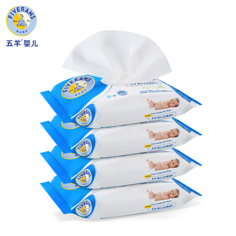 五羊婴儿卫生柔湿巾25抽*4包 宝宝bb手口湿纸巾新生儿童柔湿巾