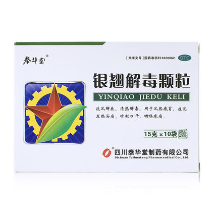 适用人群:不限 有效期:24个月 药品分类:非处方药 套餐类型:标准装 用法:口服 产品剂型:颗粒 类别:中药 品牌:泰华堂 生产企业:四川泰华堂制药有限公司 疾病:风热感冒 药品名称:银翘解毒颗粒 药品通用名:银翘解毒颗粒 规格:15g*10袋/盒 使用剂量:开水冲服。一次15克,一日3次 症状:口干咽燥.咳嗽.咽痛.头痛.干咳.痰少.鼻塞 批准文号:国药准字Z51020062 查看全文