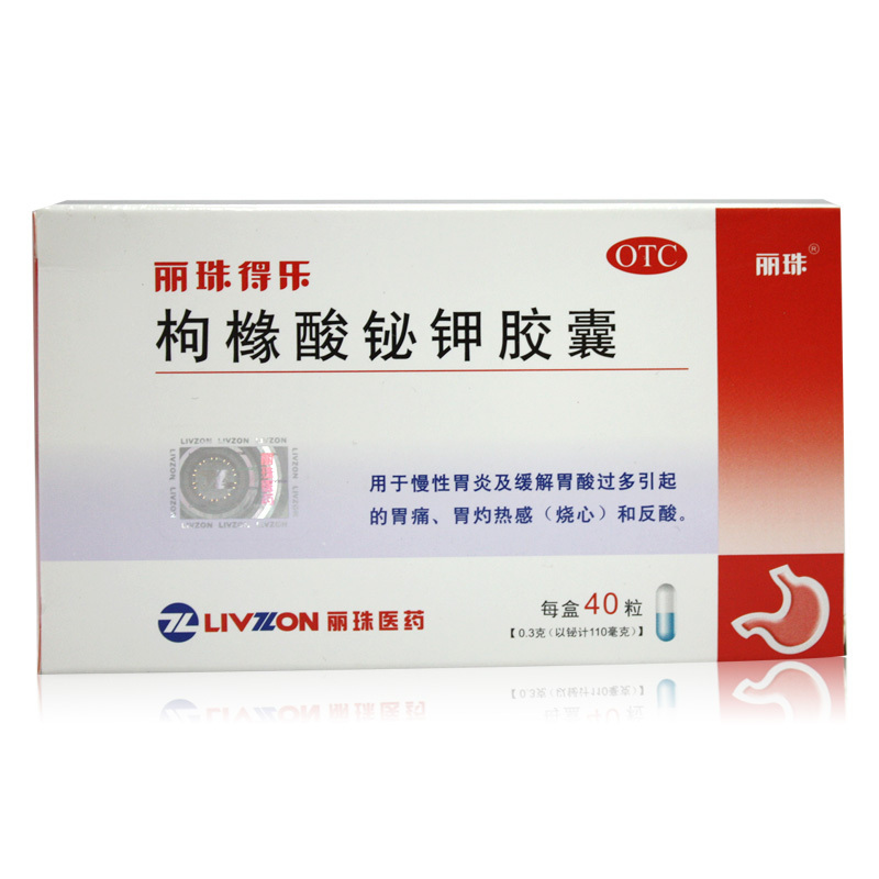 【丽珠得乐】枸橼酸铋钾胶囊 40粒 慢性胃炎 胃痛 胃灼热 反酸
