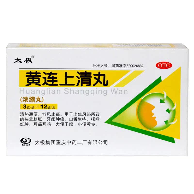 药品分类:非处方药 产品剂型:丸剂 用法:口服 适用人群:成人 有效期:36个月 类别:中药 品牌:太极 药品名称:黄连上清丸 药品通用名:黄连上清丸 规格:3g*9袋/盒 使用剂量:口服,一次3克,一日2次 疾病:风热感冒.风寒感冒.病毒性感冒.结膜炎 症状:头痛.疼痛.发热.牙痛 批准文号:国药准字Z20026887 生产企业:太极集团重庆中药二厂 查看全文