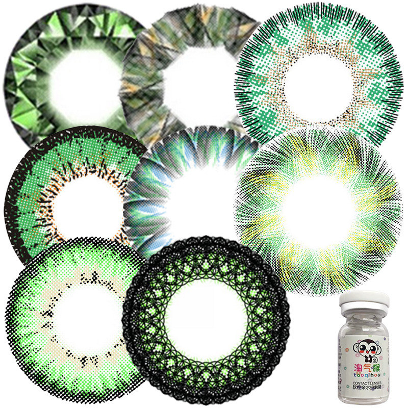 淘气猴绿色显色混血大小直径年抛隐形眼镜cosplay超薄墨绿美瞳TQH