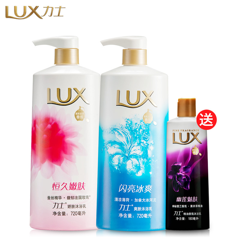 力士沐浴乳恒久嫩肤720ml+闪亮冰爽720ml+幽莲魅肤180ml