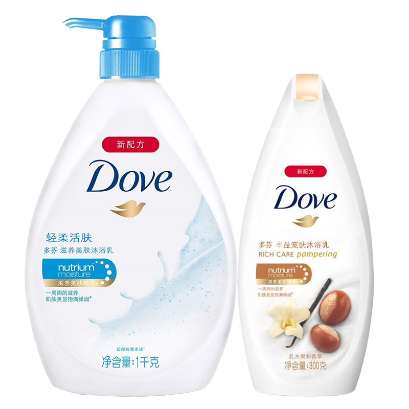 Dove多芬沐浴露轻柔活肤滋养美肤沐浴乳1千克+随机款300克
