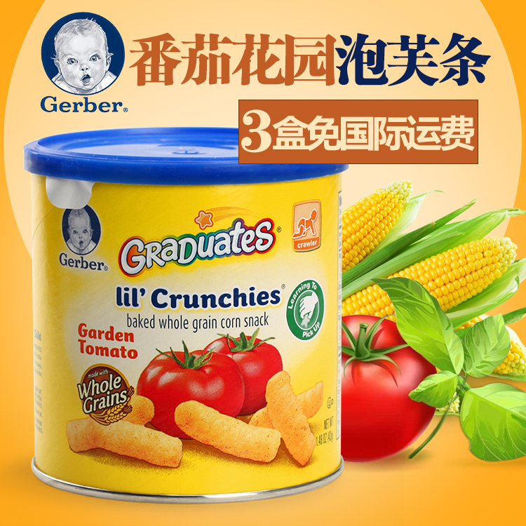 的热门产品美国直邮Gerber嘉宝谷物奶酪泡芙条番茄手指泡芙42g宝宝零食罐装