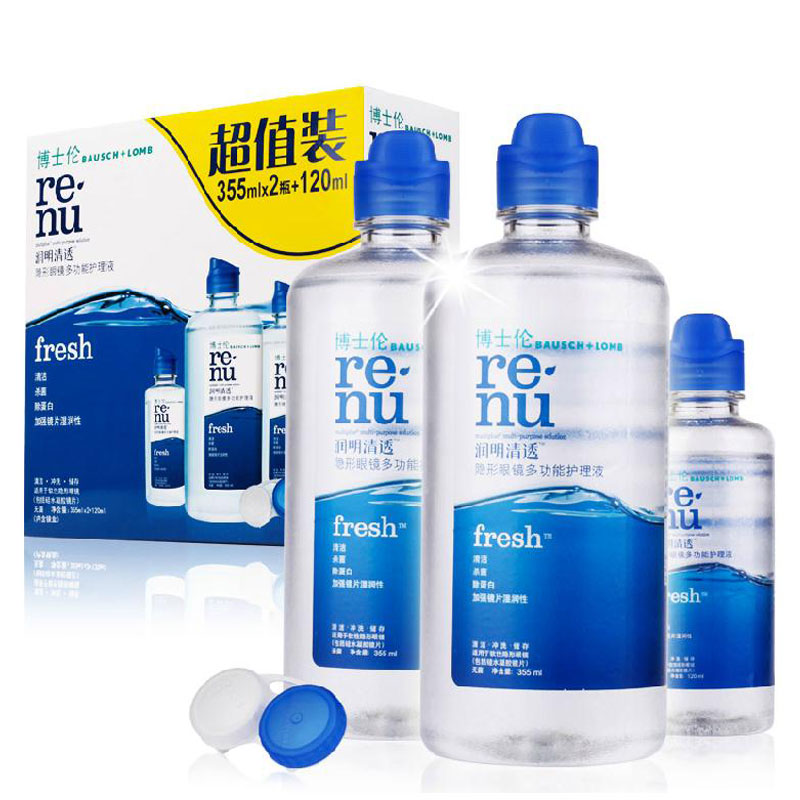 博士伦护理液 润明清透近视隐形眼镜护理液355ml×2+120ml 包邮