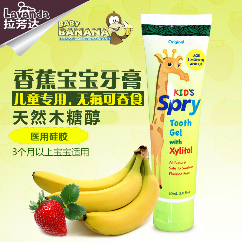 美国Baby Banana香蕉宝宝儿童牙膏可吞咽无氟婴儿护齿啫喱原味60g