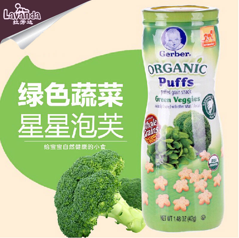 的热门产品美国Gerber嘉宝3段宝宝有机糙米蔬菜泡芙婴幼儿有机辅食宝宝零食