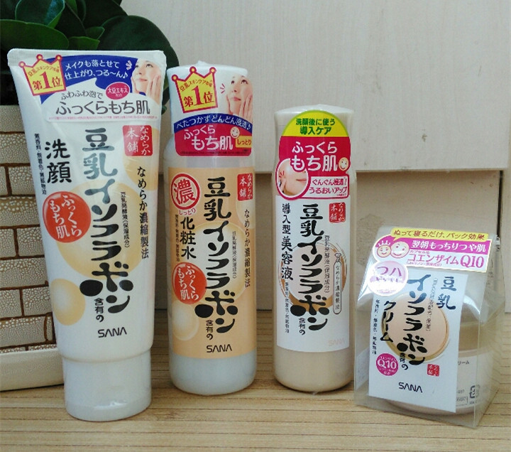 全球购 日本SANA豆乳保湿套装 洗面奶+化妆水(浓)+精华素+面霜