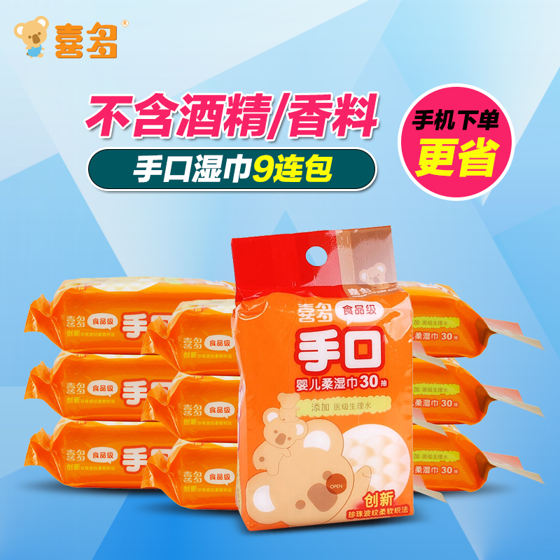 喜多手口婴儿湿巾30抽*9包 宝宝湿纸巾 270抽便携随身装