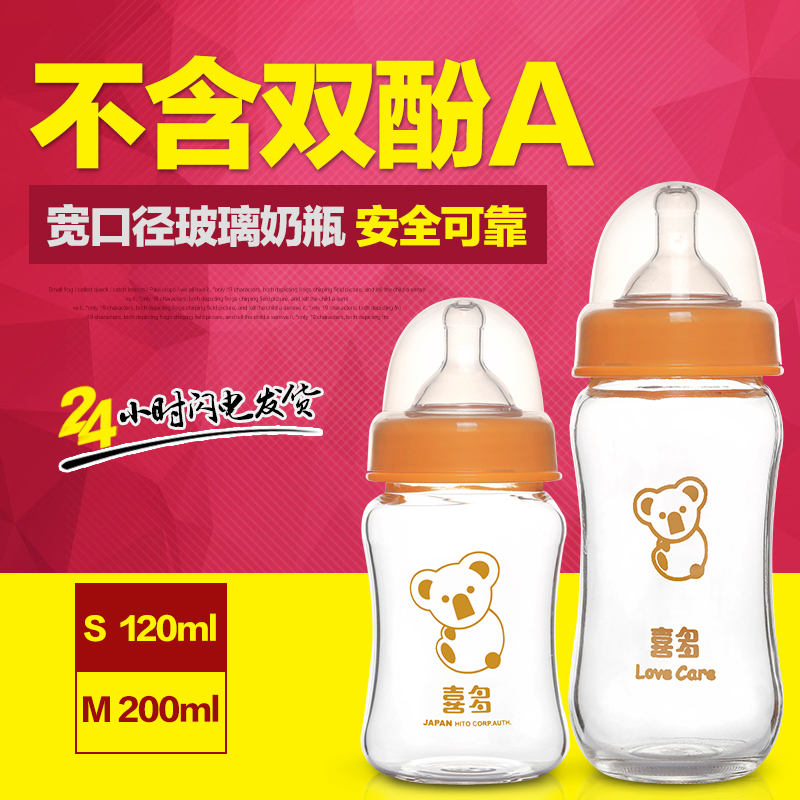 产地:中国大陆 材质:玻璃 容量:120mL 品牌:HITO/喜多 奶瓶是否带柄:不带柄 口径大小:宽口径 货号:宽口径玻璃奶瓶 颜色分类:L200ML-M号奶嘴.S120ML-S号奶嘴.奶瓶+奶瓶刷组合 查看全文