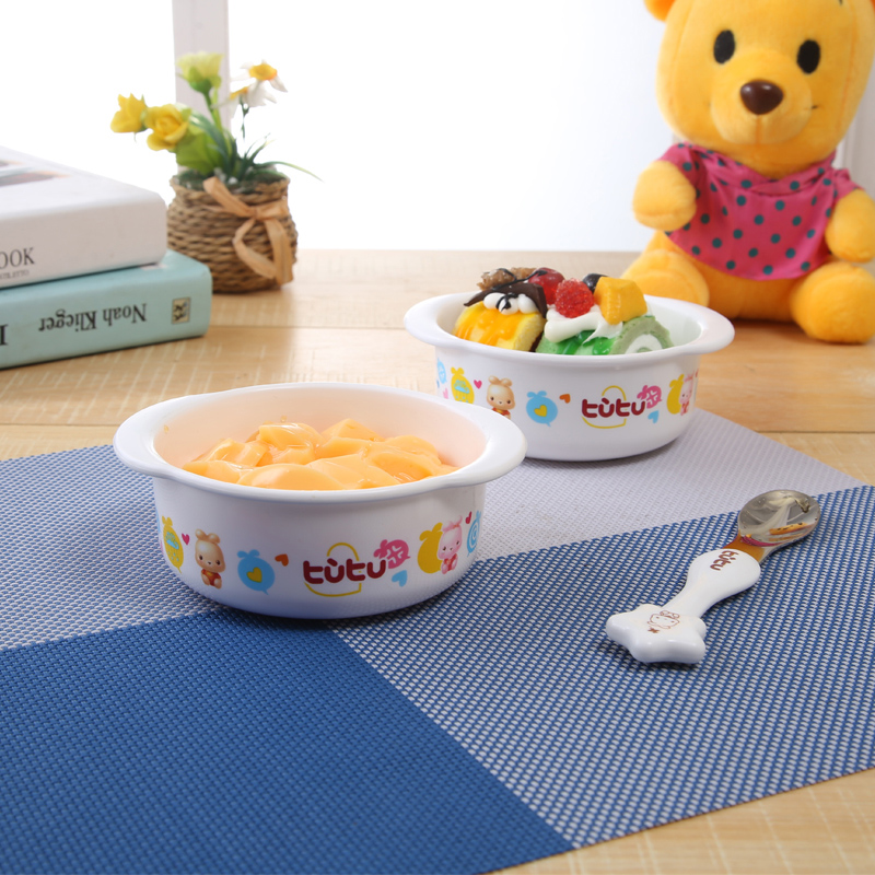 兔兔双耳 碗 儿童婴儿餐具套装辅食碗双耳把手小碗PP材质不含BPA