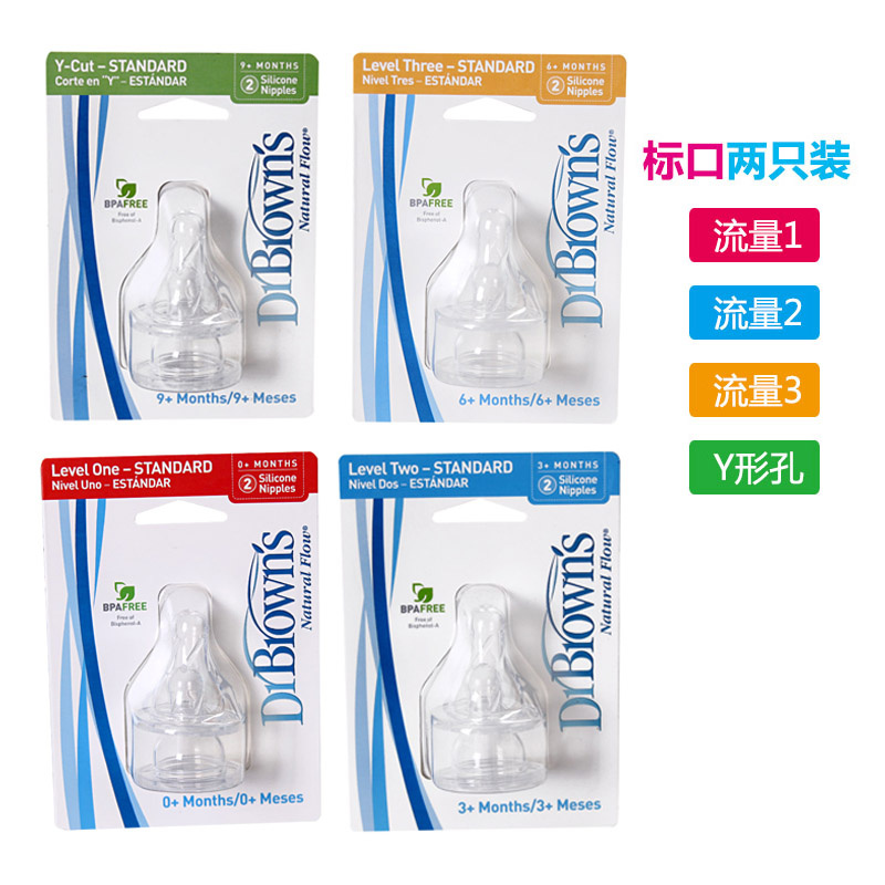 布朗博士标口婴儿奶瓶奶嘴新生儿标准口径防胀气母乳实感硅胶奶嘴