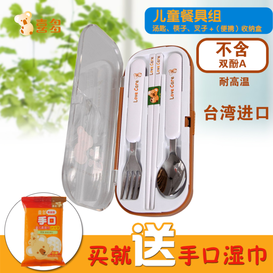 喜多酷比熊儿童餐具组 新生儿宝宝餐具套装进口不锈钢 卡通筷子