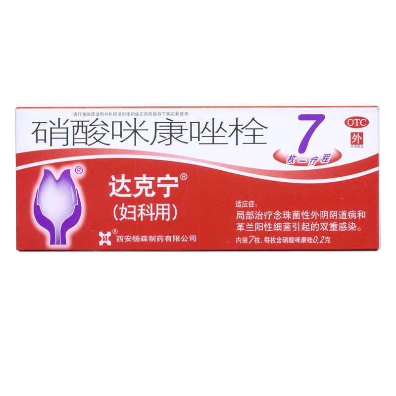 药品分类:非处方药 有效期:60个月 类别:化学药 适用人群:妇科 产品剂型:栓剂 用法:阴道给药 疾病:外阴炎 生产企业:西安杨森制药有限公司 症状:外阴瘙痒 使用剂量:每晚1次,一次1枚 品牌:达克宁 药品名称:硝酸咪康唑栓 药品商品名:达克宁 药品通用名:硝酸咪康唑栓 批准文号:国药准字H10930214 规格:0.2g*7枚/盒 查看全文